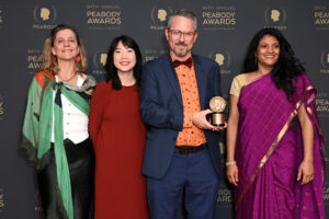 Executive Director Sam Gregory, alongside Deputy Executive Director Shantha Rau Barriga, former Executive Director Yvette Alberdingk-Thijm, and Board Co-Chair Adelin Cai attended the 84th Peabody Awards in LA on June 9th to accept the Global Impact Award. (Photo by Jon Kopaloff/Getty Images for Peabody Awards)