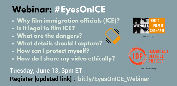 Join WITNESS and Immigrant Defense Project to learn “know your rights” and tactical information around documenting Immigration and Customs Officials.